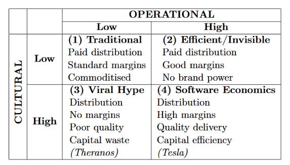 This framework scales beyond bootstrapping. Tesla at $1.3tn market cap maintains cult-like culture, leverages Musk’s personal brand for distribution, operates with maniacal urgency achieving manufacturing speed competitors cannot match, and achieves valuation multiples a tech company would envy.