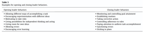 Rosing et al. (2011) argue both opening and closing behaviours must be present for innovation, requiring temporal flexibility to switch between exploration and exploitation according to innovation task requirements. Critics might dismiss this as ’Great Man’ heroic leadership. However, Rosing et al. demonstrate ambidextrous leadership derives from learnable behavioural repertoire rather than innate traits.